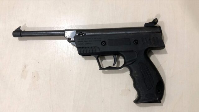 Diante do comportamento apresentado, os policiais procederam com a abordagem e, durante a busca pessoal, localizaram na mochila de um dos indivíduos uma arma de pressão adulterada para receber munições de calibre .22, sendo, por essa razão, equiparada legalmente a arma de fogo.