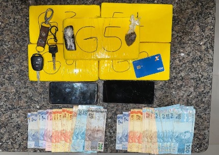 Durante as buscas, foram encontrados valores em dinheiro e, no interior de um veículo, aproximadamente cinco quilos de substância análoga à cocaína, além de porções de haxixe e maconha, todas embaladas de forma compatível com o tráfico de drogas.