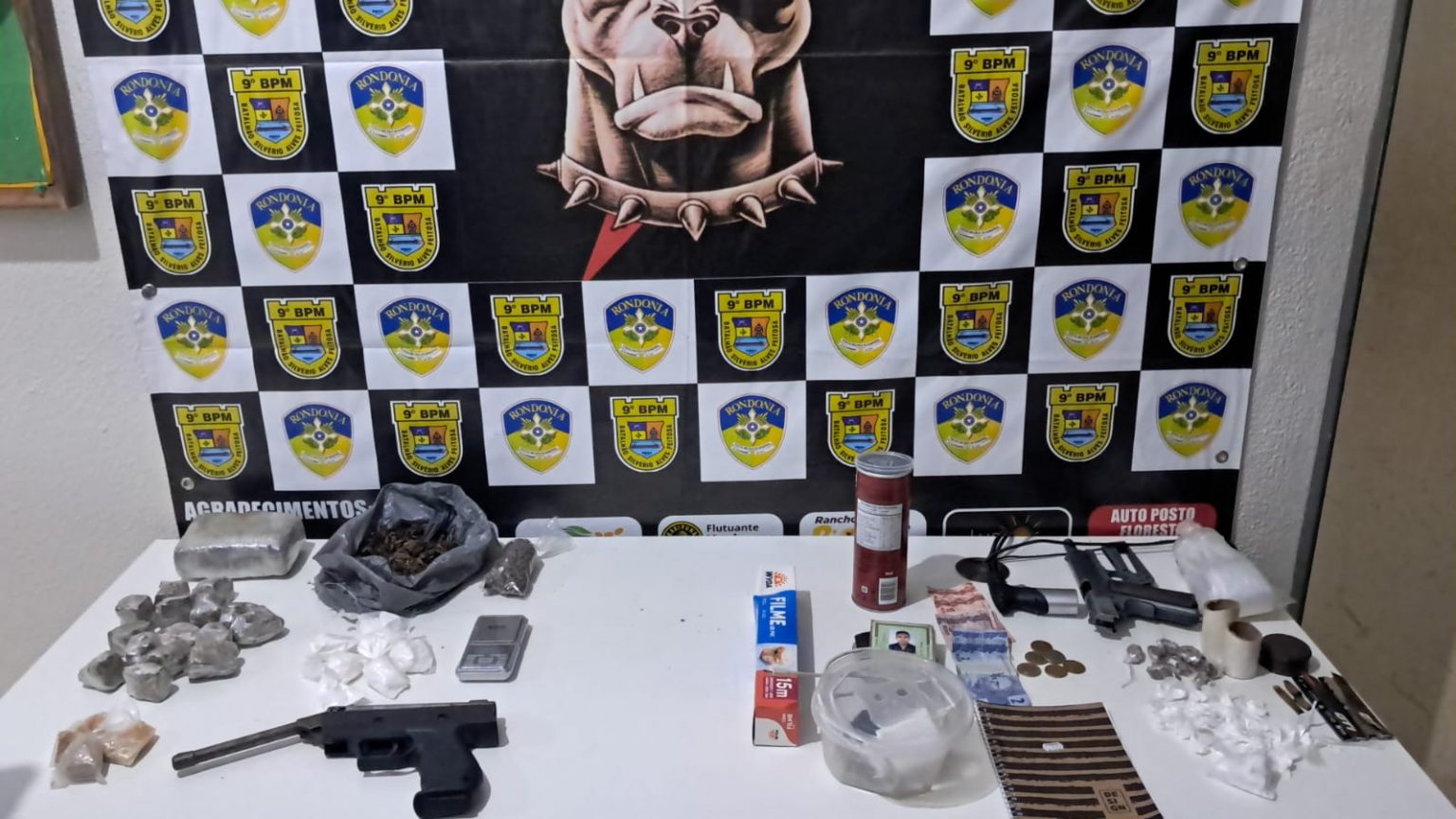 Uma ação rápida e eficiente da Polícia Militar de Rondônia resultou na apreensão de entorpecentes, arma adaptada e diversos materiais utilizados no tráfico de drogas na noite deste sábado (14), no distrito de Jaci-Paraná.