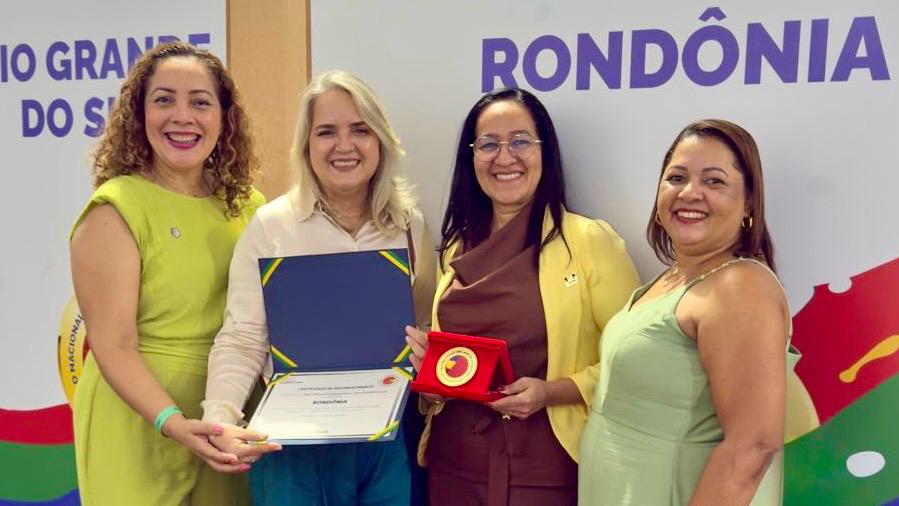 A alfabetização na rede estadual de Rondônia segue como destaque nacional. Nesta segunda-feira (23) foi entregue em Brasília, o Selo Prata do Compromisso Nacional Criança Alfabetizada (CNCA), concedido pelo Ministério da Educação (MEC). A certificação reafirma o protagonismo do estado na implementação de políticas públicas voltadas à aprendizagem na idade certa. O estado teve 49 municípios inscritos, com 98% (noventa e oito por cento) contemplados nas categorias bronze, prata e ouro. Ao todo, Rondônia conquistou selo ouro em 24 municípios, 21 com selo prata e 3 com selo bronze. Na Região Norte, o estado também se destacou ao integrar o grupo de entes reconhecidos, consolidando-se como referência regional.
