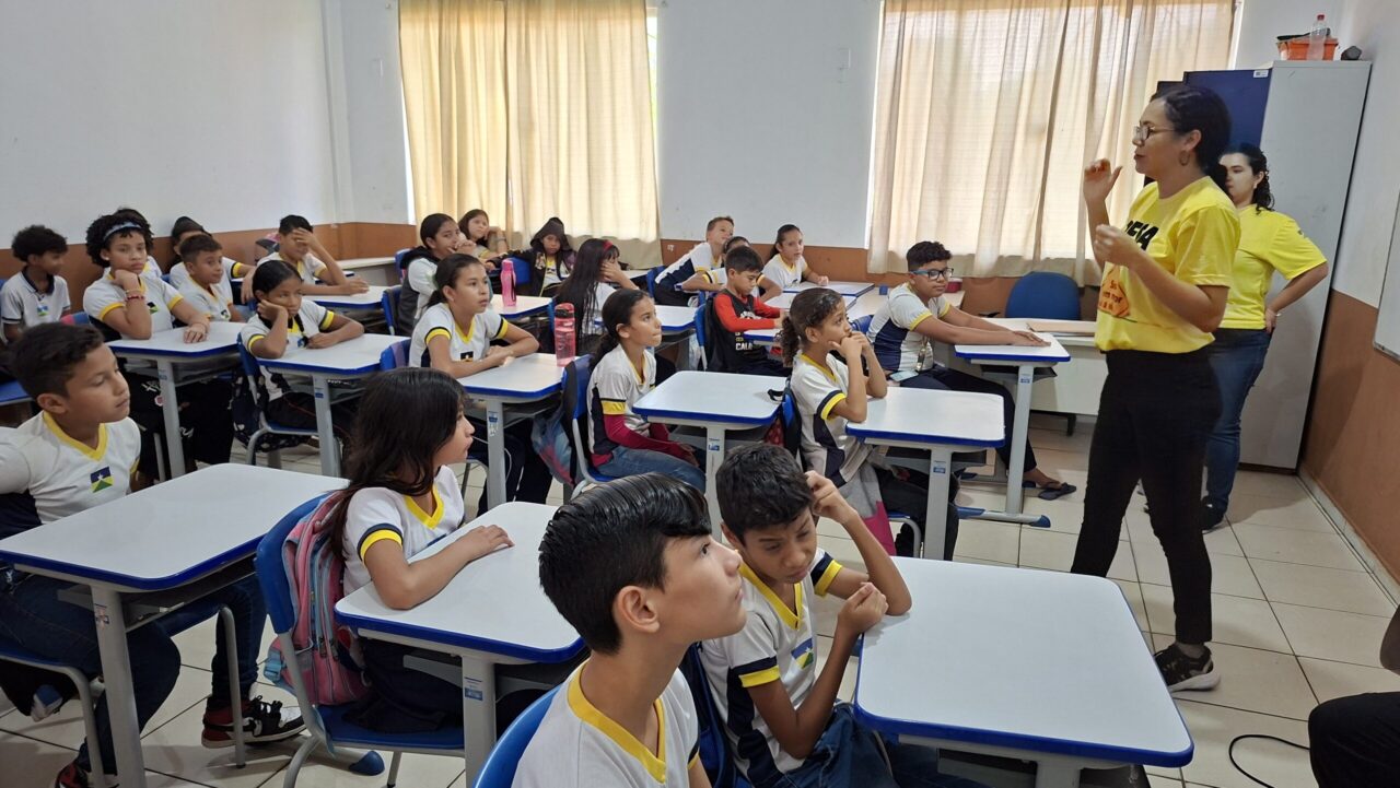 O governo de Rondônia realizou mais um encontro com os participantes do projeto Agente Mirim do Trânsito, iniciativa do Departamento Estadual de Trânsito (Detran-RO), que promove cidadania e segurança desde cedo. A atividade, desenvolvida pela Escola Pública de Trânsito (EPTran), reuniu os alunos para dois momentos especiais: o ensaio da música “Paciência”, que será apresentada na formatura em novembro, e a votação para definir o nome da mascote do projeto, criada a partir de um concurso de desenhos entre as turmas.