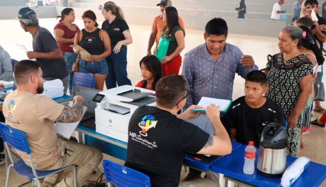 Indígenas das etnias Oro Nao e Oro Waram receberam atendimento do projeto MP Itinerante, nesta quinta-feira (29/8), em Nova Mamoré. O grupo, em maior parte da Aldeia Ribeirão, chegou a percorrer um trajeto de duas horas de carro lotação para acessar os serviços na Escola Professor Salomão Silva. As ações no Município nesta quinta marcaram o encerramento da terceira edição do projeto em 2024.