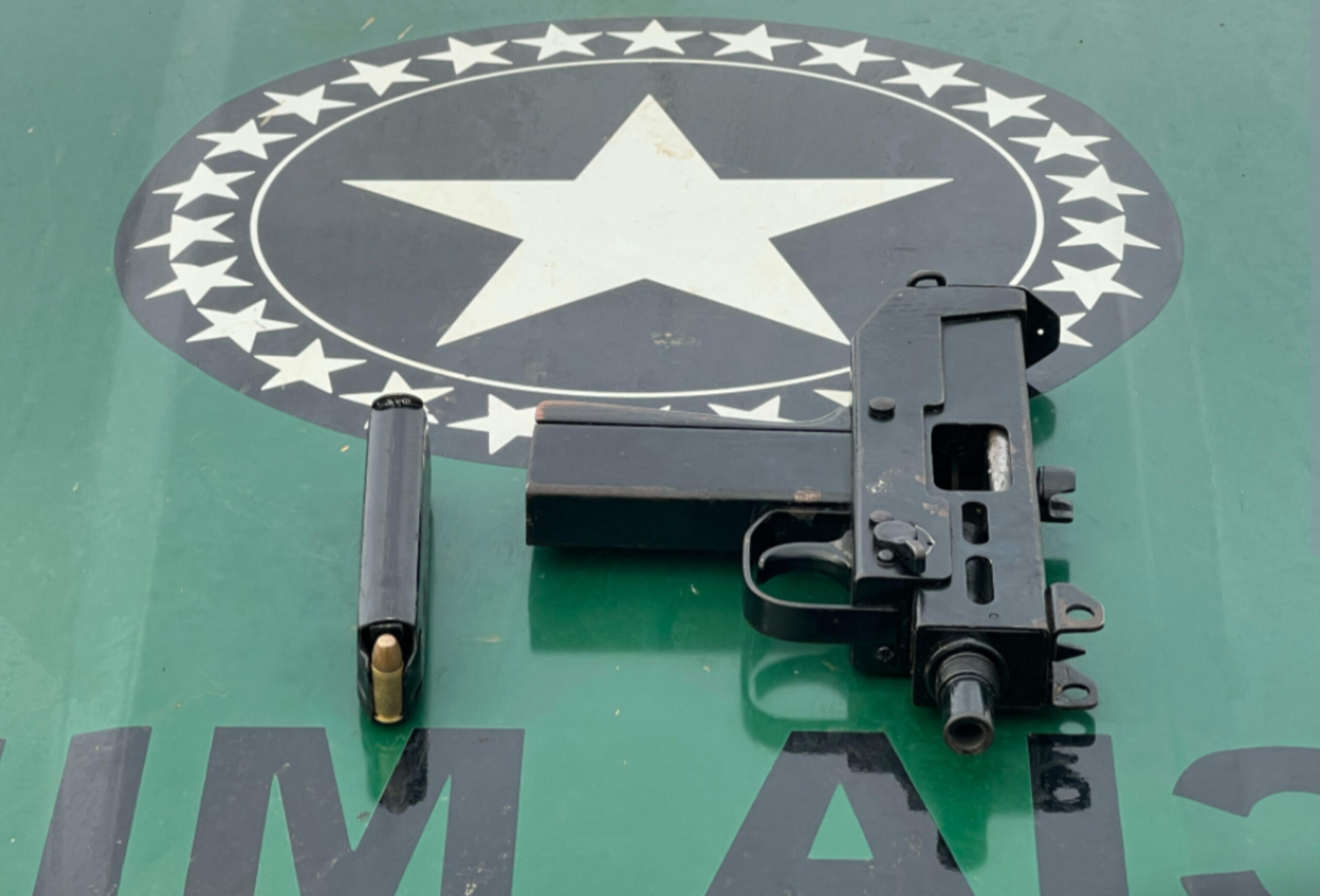 Ao perceber a presença da viatura, o condutor realizou manobras suspeitas, denotando nervosismo. Diante disso, uma abordagem foi conduzida, incluindo busca pessoal nos ocupantes do automóvel, não revelando itens ilícitos. No entanto, uma busca no veículo revelou uma metralhadora 9mm, imitação do modelo “UZI” israelense, com carregador e uma munição intacta, encontrada sobre a caixa de som.