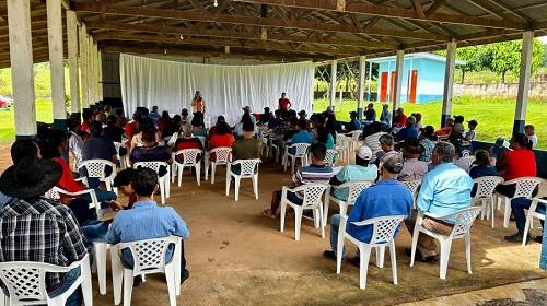 Durante audiência pública que ocorreu no barracão da Comunidade Nossa Senhora Aparecida na linha 60, na cidade de Alta Floresta, a deputada estadual Cláudia de Jesus (PT) falou com moradores locais sobre o Plano Nacional de Crédito Fundiário (PNCF) juntamente com agricultores familiares e a equipe do Ministério do Desenvolvimento Agrário (MDA).