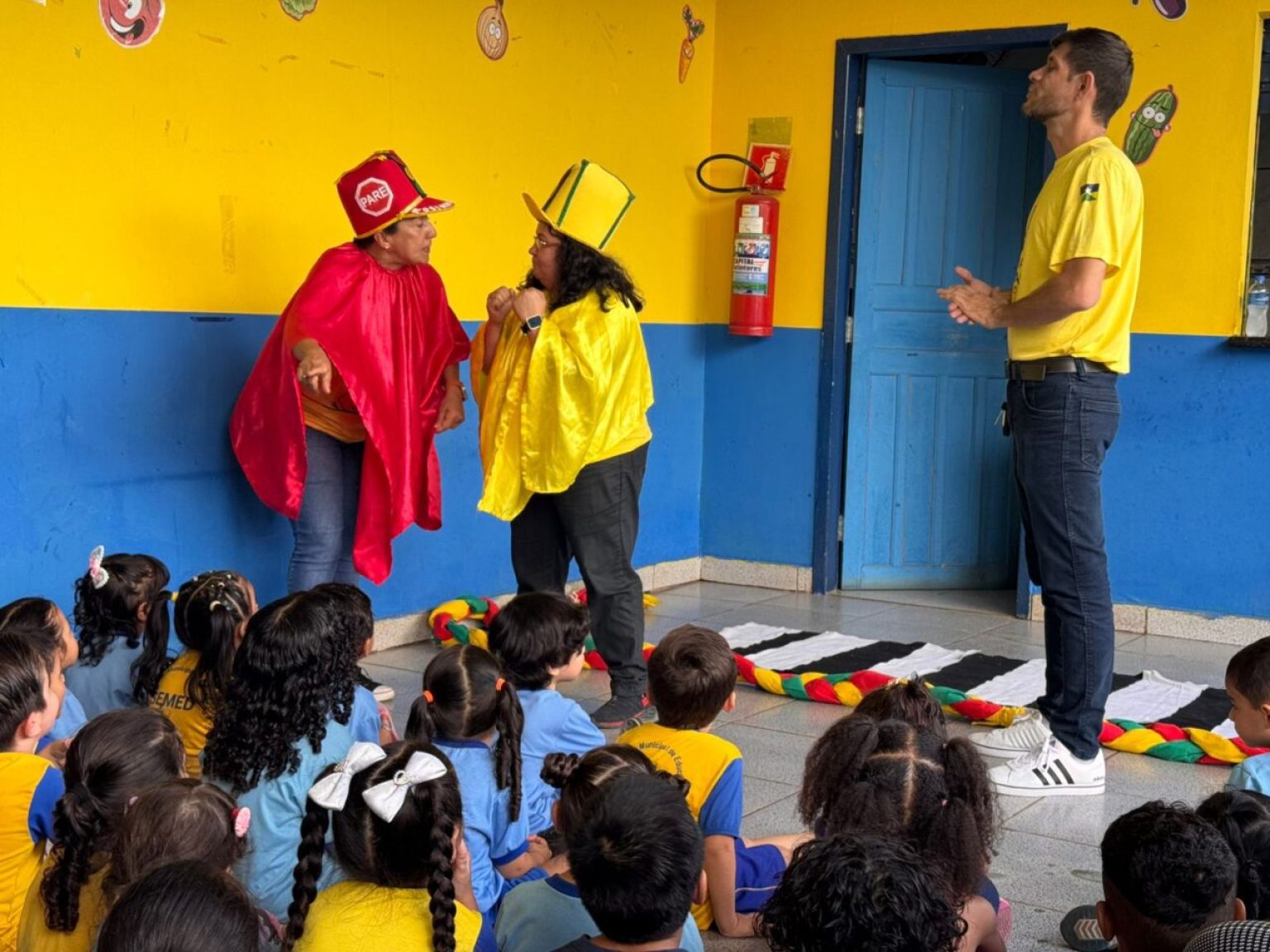 Estudantes aprendem sobre regras de segurança no trânsito com teatro e brincadeiras