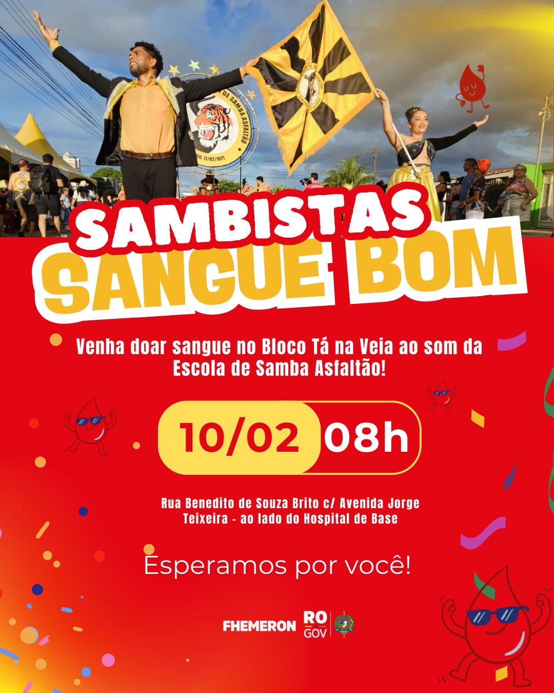 FAMÍLIA ASFALTÃO SE UNE À FHEMERON  NA CAMPANHA SAMBISTA SANGUE BOM