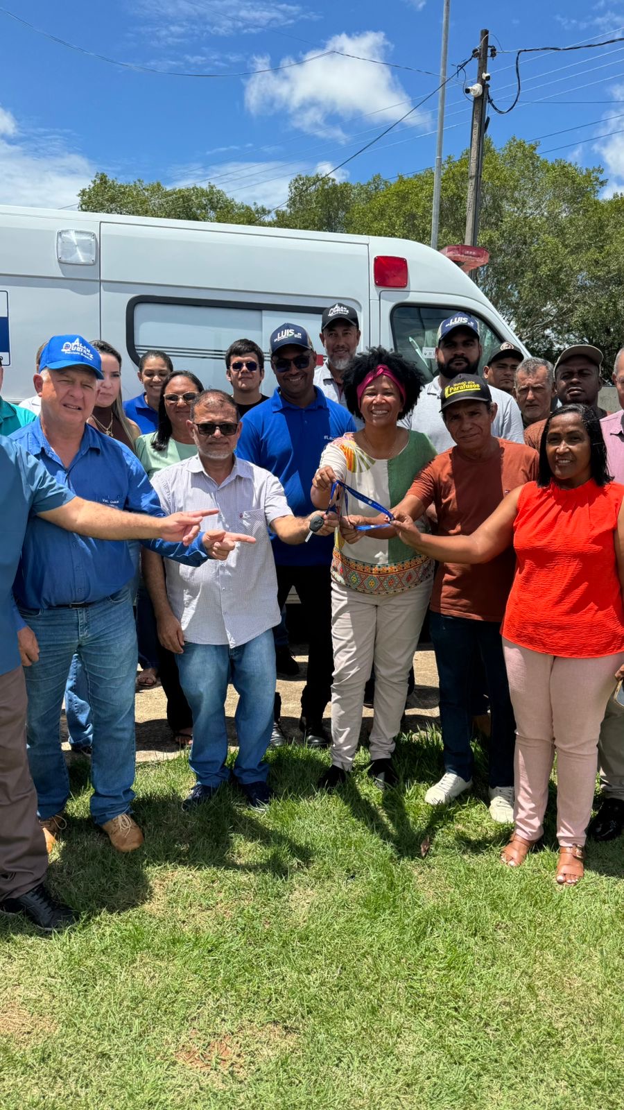 A ambulância atende ao pedido da vereadora Noelia, que estava presente ao ato de entrega, junto com o prefeito Gilmar Tomaz, o vice-prefeito Agnaldão e os vereadores Leo Gás, Tico Patroleiro, Juninho do Ventura, Gelson Carioca, Dedé Almeida e Roberto da Agricultura.