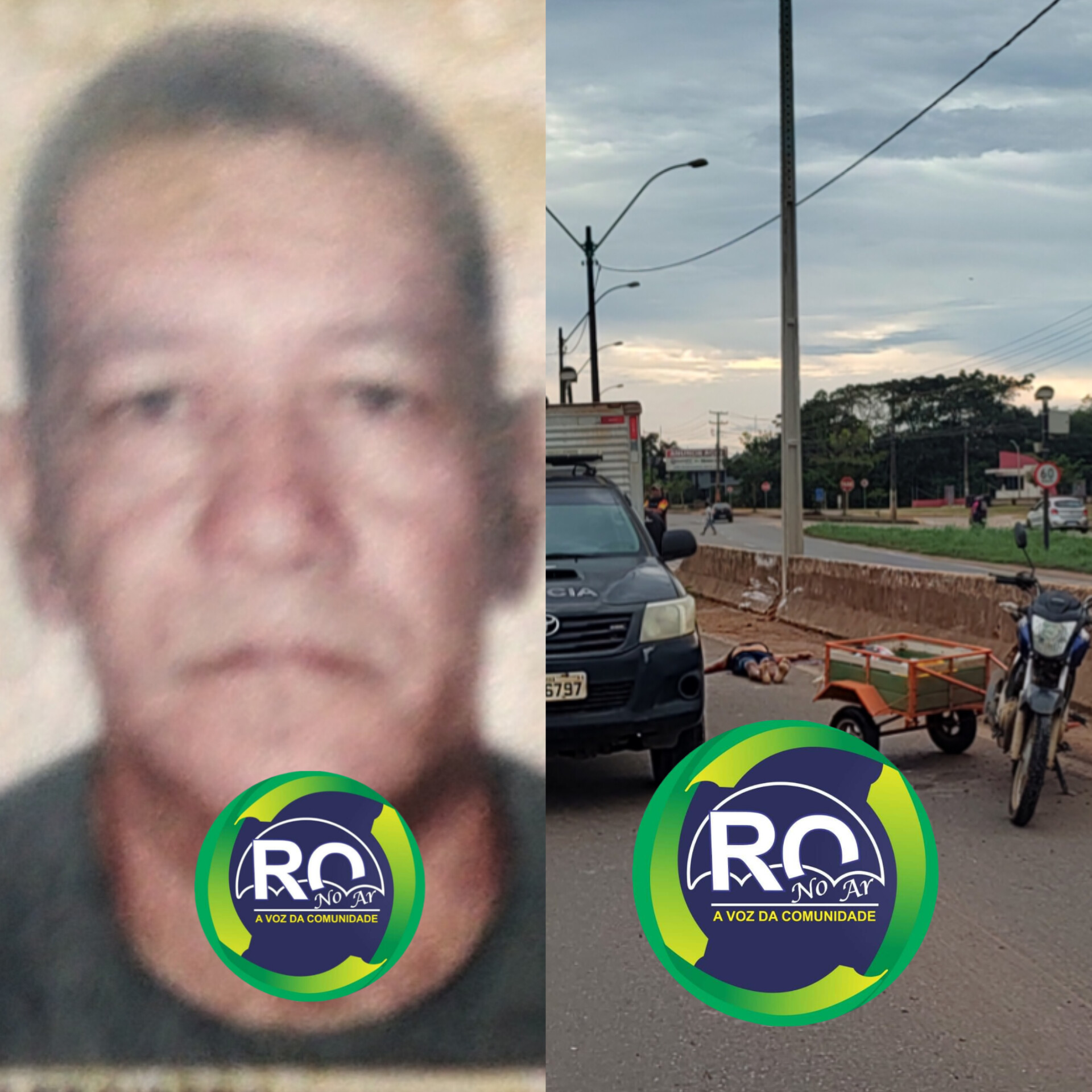 Informações, a vítima foi identificado sendo Francisco leite moreno de 57 anos, o motociclista com uma mulher na garupa seguia na BR -364 sentido candeias ao chegar próximo da AABB tentou ultrapassar uma carreta e atingiu um veículo que estava na outra via e perdeu o controle da moto e bateu na mureta e morreu no local e mulher foi socorrida ao João Paulo II em estado grave, por uma UR do SAMU.