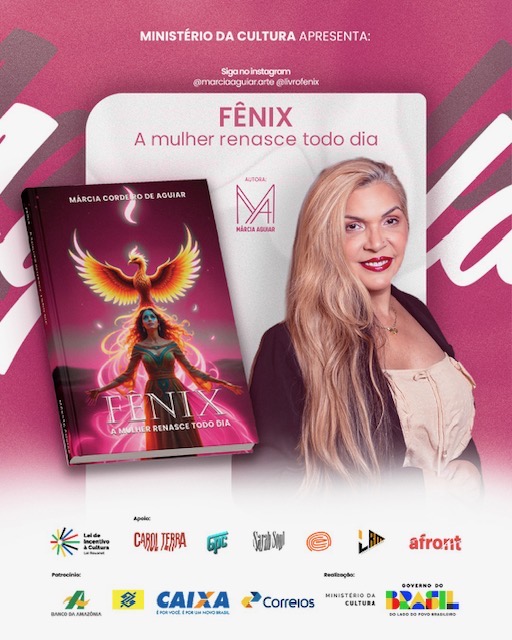 O livro “FÊNIX – A Mulher Renasce Todo Dia” conta com o patrocínio da CAIXA e realização do Ministério da Cultura e do Governo Federal, por meio da Lei de Incentivo à Cultura – Programa Rouanet Norte.