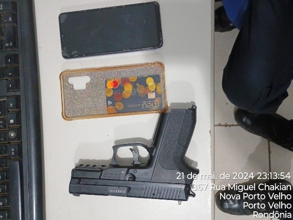 A vítima saiu do carro gritando “pega ladrão” e juntamente com populares deu início a busca ao elemento quando se deparam com a guarnição do CPOC, já na avenida Cassiterita próximo a avenida Diamante. De posse dessas informações a guarnição deu voz de prisão e cientificou o infrator sobre os seus direitos constitucionais, sendo utilizadas algemas, conforme previsão da Súmula Vinculante 11 do STF, para resguardar a integridade física do conduzido, bem como, da guarnição.