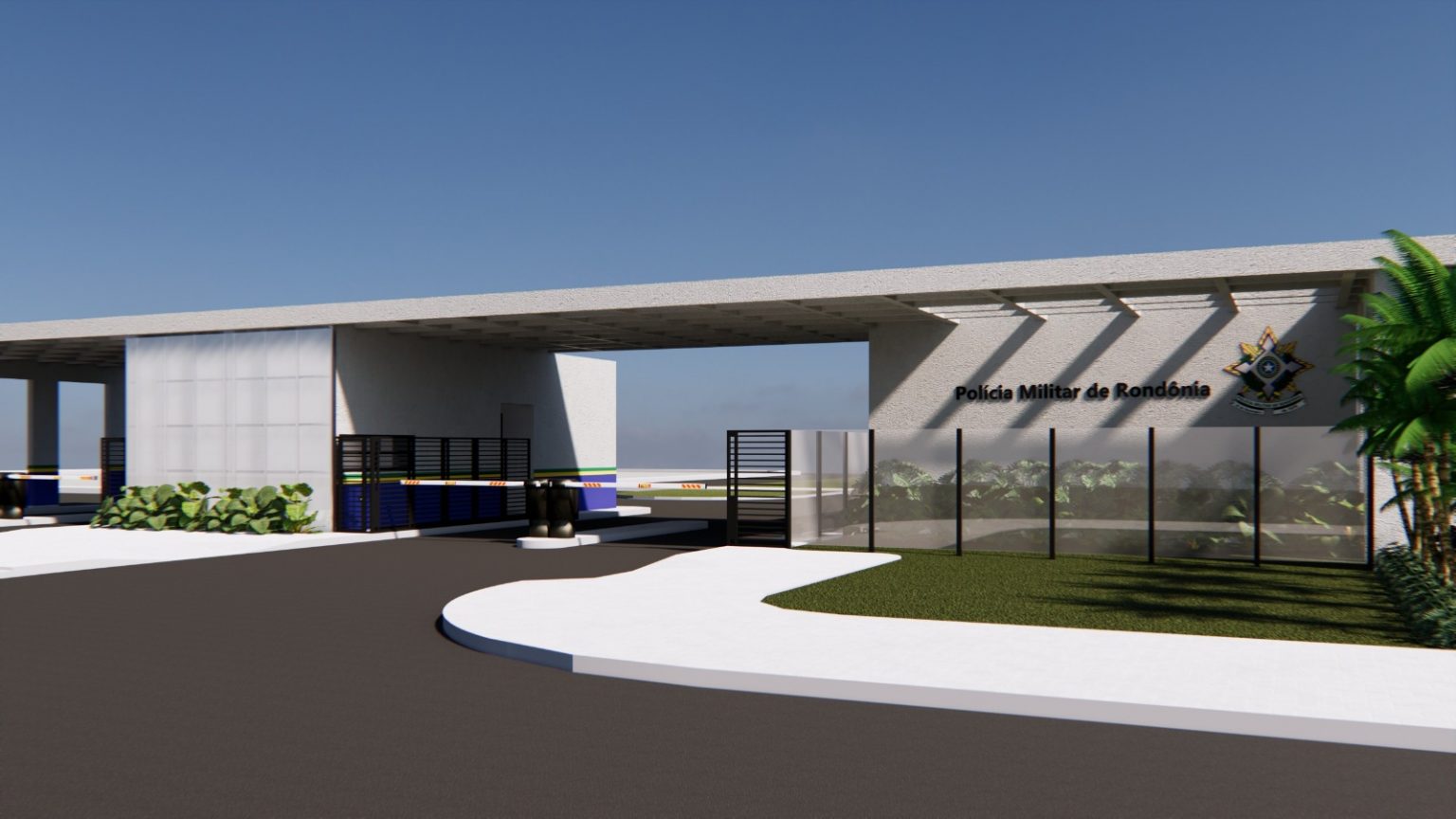 O projeto arquitetônico incorpora soluções contemporâneas, paisagismo integrado e infraestrutura tecnológica compatível com as demandas operacionais atuais, resultando em maior eficiência no controle de acesso e melhores condições de trabalho para o efetivo.
