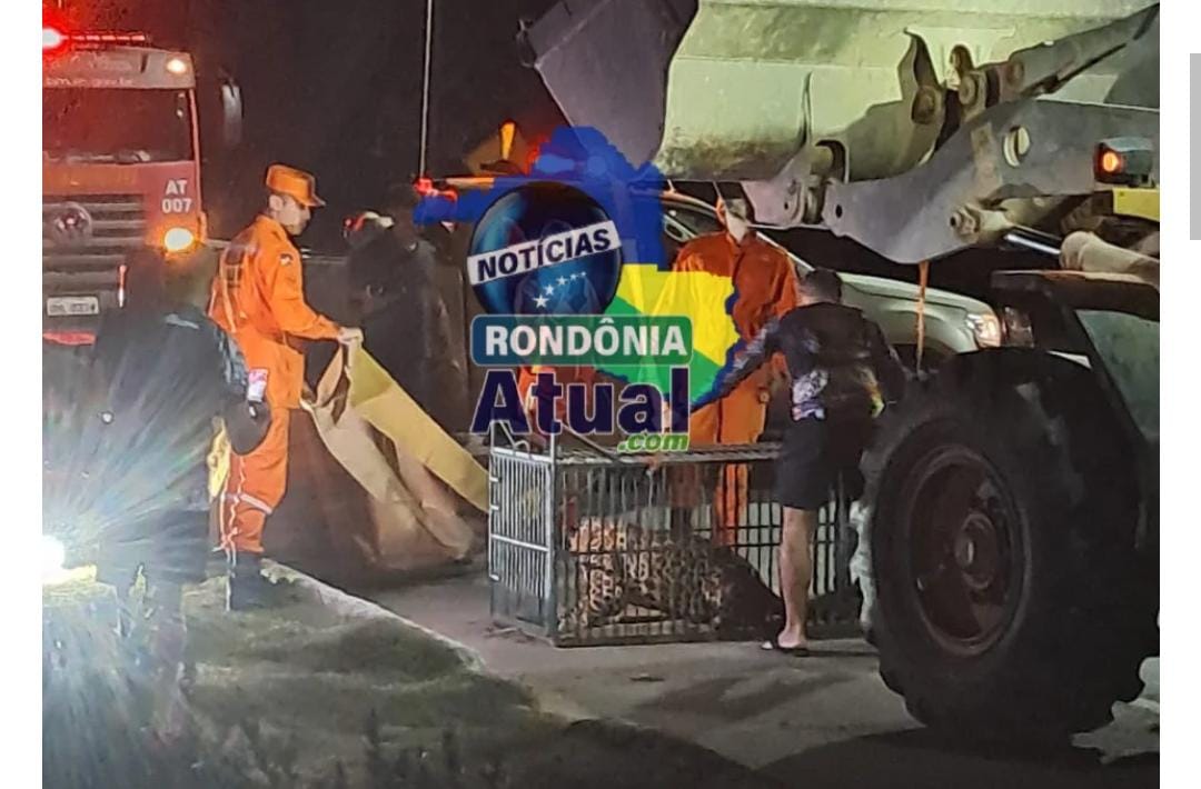 Uma onça-pintada foi capturada na madrugada desta quarta-feira (13) em Ji-Paraná (RO), após ser vista diversas vezes circulando nas proximidades de um condomínio de luxo localizado no Terceiro Distrito, próximo ao rio Urupá.