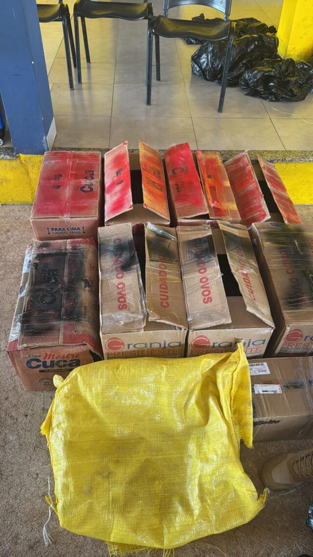 O caminhão, que fazia o trajeto de Jaru/RO com destino a Nova Mutum/MT, foi interceptado após troca de informações entre as instituições. Durante a fiscalização, os policiais localizaram diversas caixas e sacos plásticos ocultos na cabine do veículo, contendo 349,520 kg da substância ilícita.