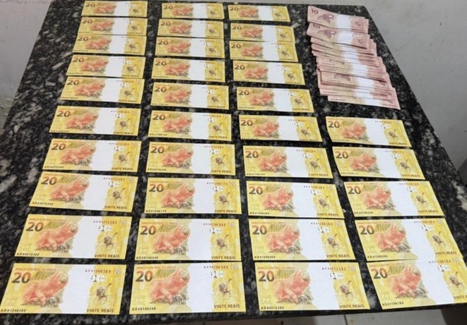 A encomenda endereçada ao investigado continha o valor de R$ 1.210 em notas falsificadas, sendo cédulas de diferentes valores e com números de série variados.