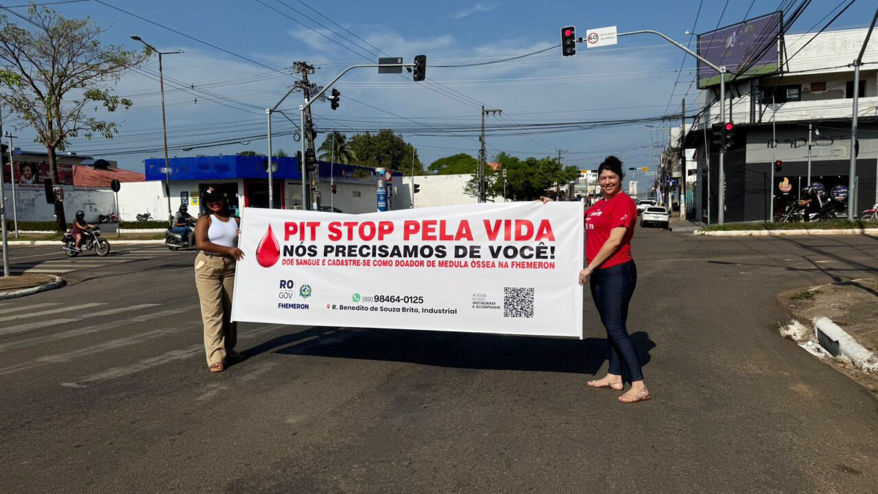 Mais de 200 motoristas e motociclistas foram abordados na segunda-feira (22), durante o Pit Stop pela Vida, realizado pelo governo de Rondônia, na Avenida Calama, esquina com a Rio Madeira, em Porto Velho. A mobilização teve como foco a conscientização da população sobre a importância da doação de sangue e do cadastro de medula óssea, em alusão ao Dia Mundial do Doador de Medula Óssea, celebrado no dia 20 de setembro.