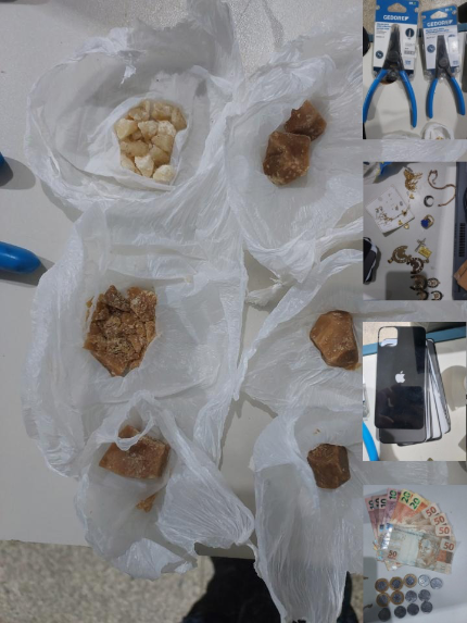 Durante a abordagem, conduzida com segurança e técnica policial, a guarnição localizou mais entorpecentes escondidos junto ao corpo da suspeita, além de dinheiro em espécie, uma faca utilizada para fracionamento da droga e anotações possivelmente relacionadas à comercialização ilícita. A substância apreendida totalizou aproximadamente 29,30 gramas, já dividida em pequenas porções prontas para a venda, o que reforçou os indícios de tráfico de drogas.