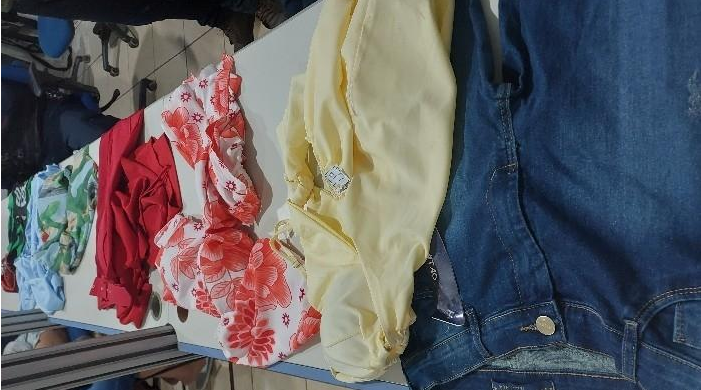 Em continuidade às diligências, os policiais localizaram mais roupas escondidas em um quintal e dentro de uma residência. No local, estavam peças como vestido, bermuda, calça jeans e blusas. A mãe de um dos menores admitiu que sabia da existência dos produtos furtados, o que levou à sua prisão em flagrante pelo crime de receptação.