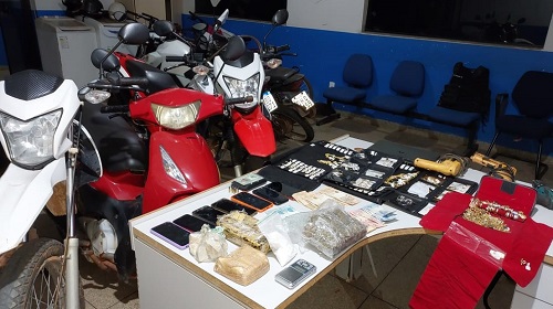 Na residência os militares encontraram, além da motocicleta referida, mais duas motocicletas com restrição de roubos e furtos, 300 gramas de maconha, 115 gramas de cocaína, 1,8 kg de crack e vários objetos provenientes de furtos.