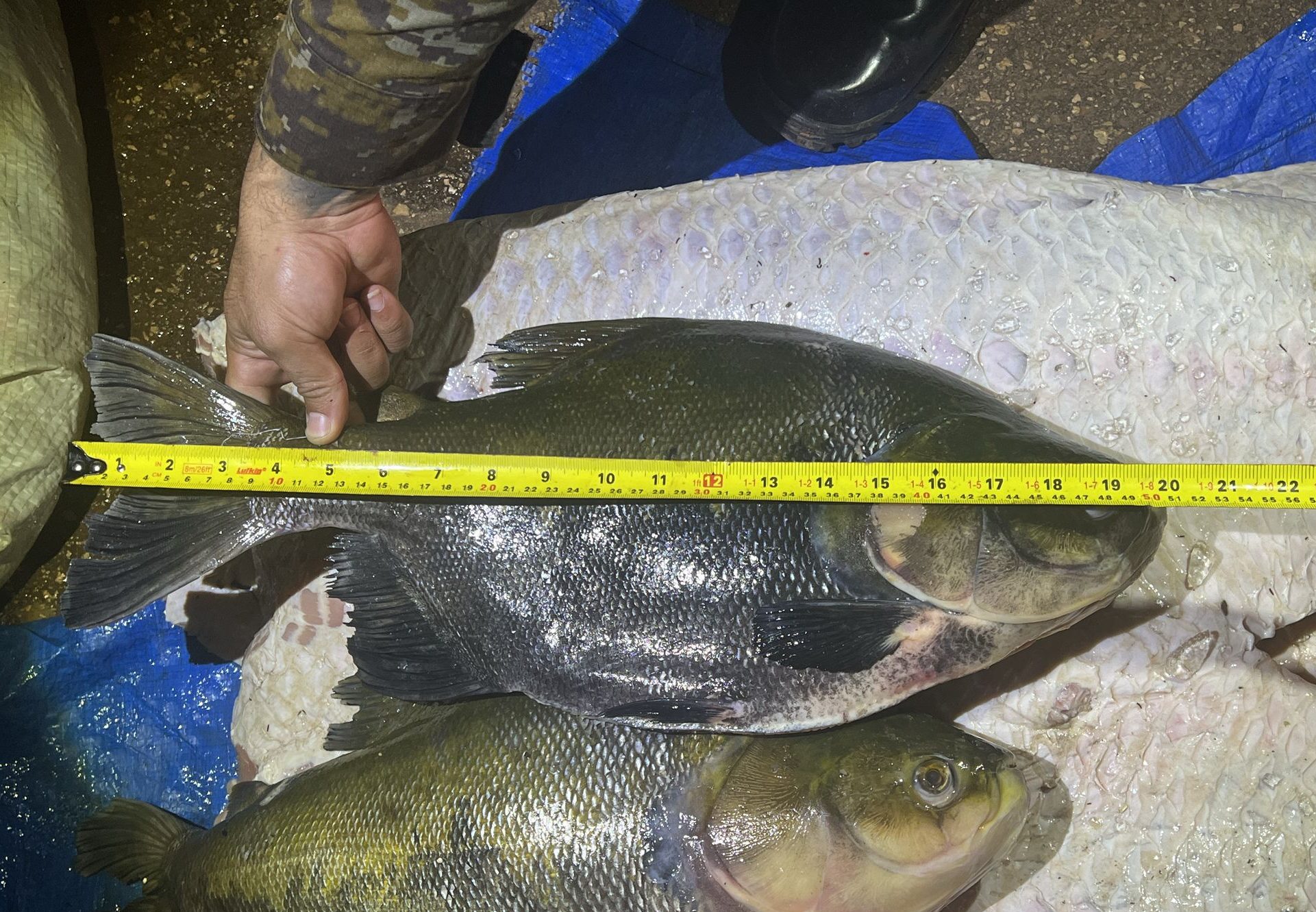 pescados, totalizando 300 quilos das espécies Branquinha e Pirarucu, estavam sendo transportados com guias registradas em nome de um terceiro. No entanto, durante a fiscalização, foram encontrados exemplares de Pirarucu e Tambaqui com tamanhos abaixo do permitido por lei.