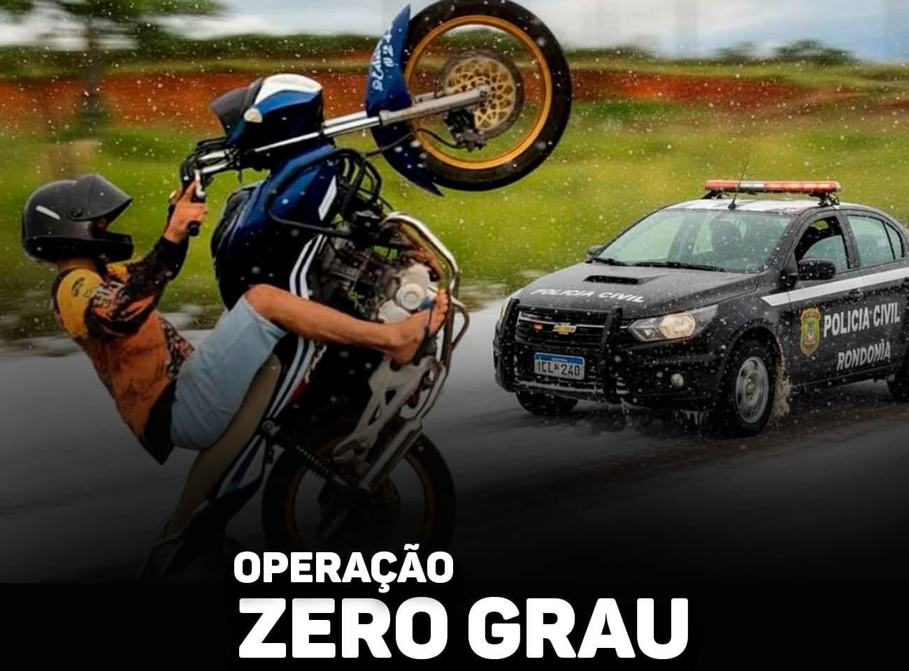 A Polícia Civil de Rondônia, na data de hoje, realizou a operação denominada “Zero Grau”, com o objetivo de coibir a prática de “rolezinhos”, manobras perigosas conhecidas como “grau” e disputas automobilísticas ilegais, popularmente chamadas de rachas. A ação consistiu no cumprimento de mandados de busca e apreensão, fundamentados em denúncias e levantamentos técnicos de inteligência, resultando na apreensão de automóveis e, principalmente, motocicletas utilizadas por condutores que reiteradamente praticavam infrações de trânsito, colocando em risco a própria integridade física e a de terceiros.