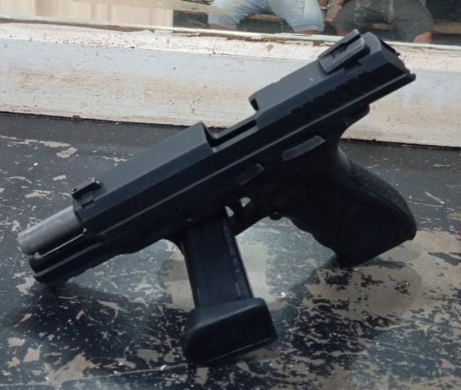 Durante a abordagem, um objeto suspeito foi lançado para fora do veículo, posteriormente identificado como uma arma de fogo do modelo TH380, com registro de furto. Além da arma, foram apreendidos um carregador e munições intactas. A perícia também encontrou estojos deflagrados no local.