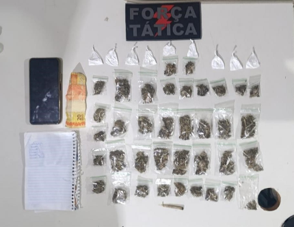 Durante a ação, os policiais visualizaram movimentações compatíveis com o consumo e a comercialização de entorpecentes. Na averiguação, foram localizadas diversas porções de substâncias análogas à maconha e à cocaína, além de dinheiro em espécie, caderno com anotações relacionadas ao tráfico e um aparelho celular que, conforme os indícios, era utilizado na atividade criminosa. A atuação foi conduzida de forma técnica, segura e dentro dos protocolos operacionais, resultando na correta individualização das condutas dos envolvidos.