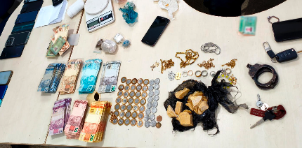 Em continuidade, um suspeito foi flagrado saindo rapidamente do local em um veículo, sendo acompanhado e abordado. Com ele, foram encontrados R$ 8.964,15 em espécie e grande quantidade de substância análoga ao crack, acondicionada de forma semelhante à encontrada no ponto investigado. O abordado admitiu envolvimento com a entrega e venda de drogas na cidade.