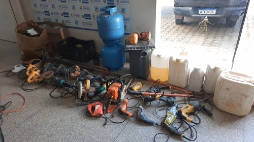 Dentro de um caminhão de propriedade do suspeito foi localizado 240 lascas de eucalipto. Em sua residência no bairro União II em Ji-Paraná também foi encontrado 01 motocicleta CG Titan, 13 sacos de sal mineral, 16 sacos de quirela, 07 serras mármore, 04 furadeiras, 03 marteletes, 02 botijas de gás, 01 motosserra, 01 betoneira, entre outros diversos objetos e equipamentos de uso rural, possivelmente produtos de furto.