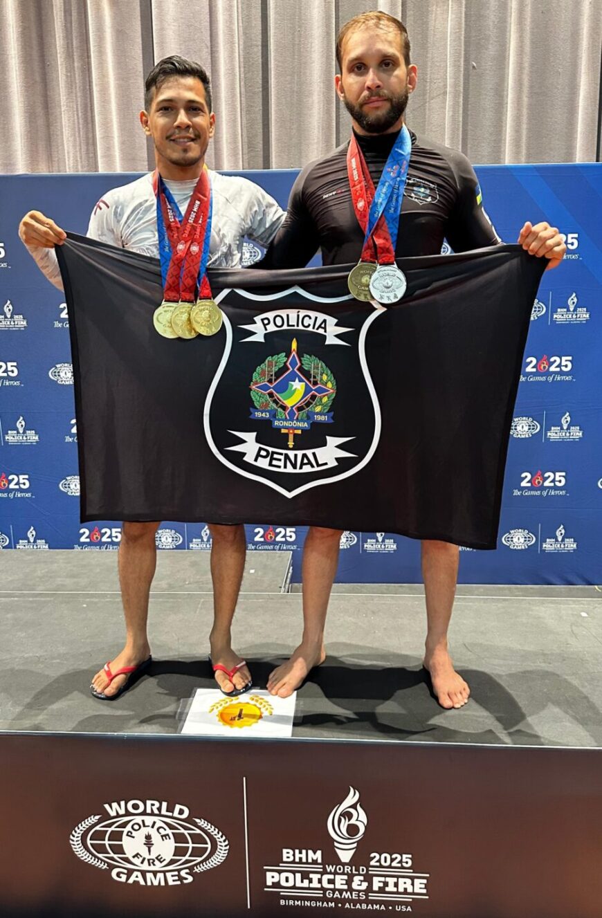 Os policiais penais e atletas Ângelo Rafael e Rafael Lisboa representaram o estado de Rondônia nas modalidades de judô, jiu-jitsu e grappling (luta corpo a corpo ou luta agarrada), conquistando importantes premiações.