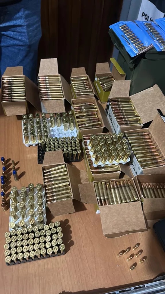 Durante a operação, as autoridades executaram mandados de busca e apreensão em três endereços, onde foram encontradas seis armas de fogo, cerca de 800 munições, lunetas de precisão e diversos equipamentos de uso policial e militar. Entre as armas apreendidas, destacam-se três fuzis, uma espingarda calibre 454, um revólver 357 e uma pistola