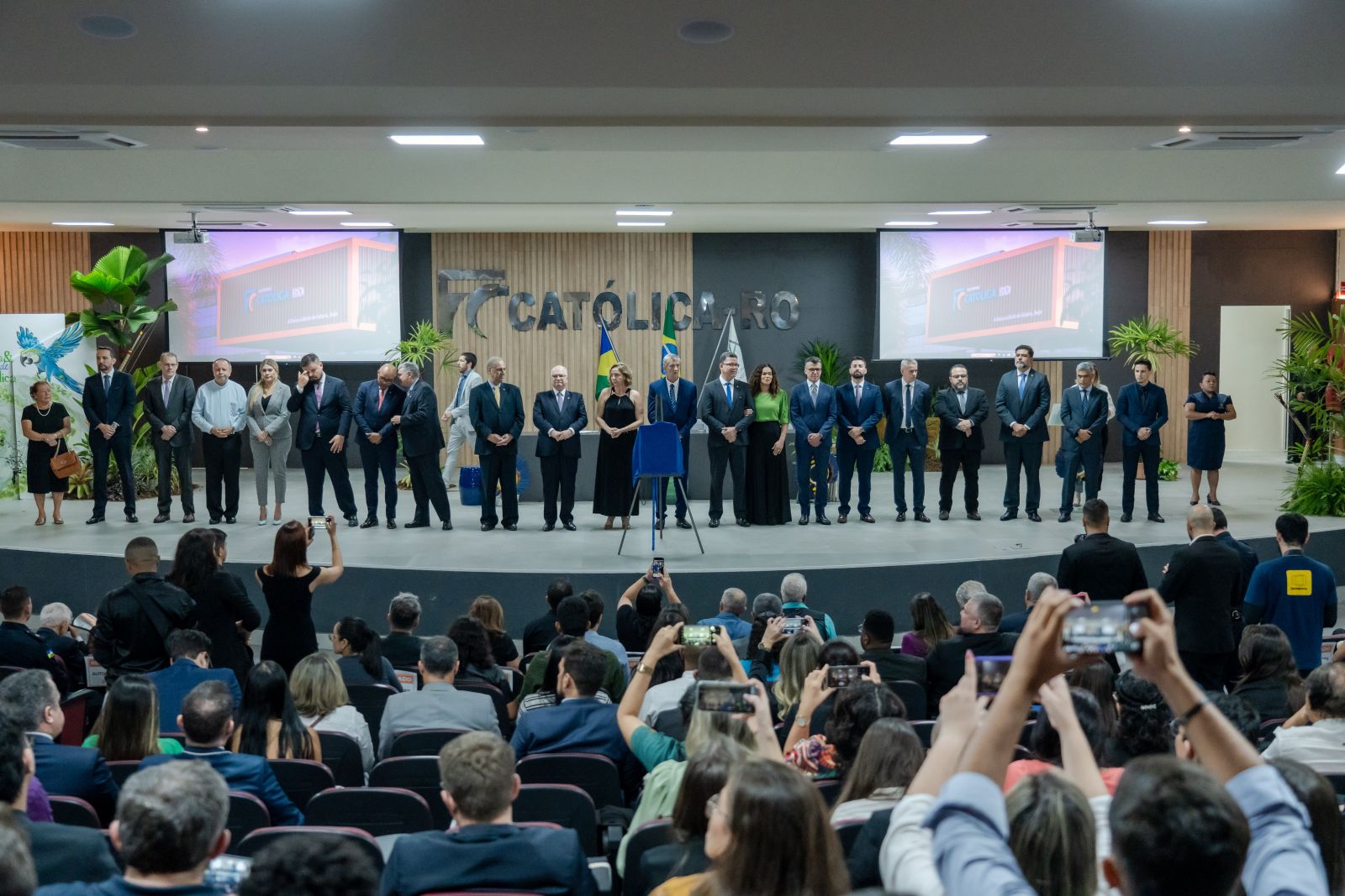 Da solenidade, presidida pela reitora, a professora Dra. Márcia Abib Hecktheuer, também participaram o governador Marcos Rocha, o presidente do Tribunal de Justiça do Estado de Rondônia, desembargador Raduan Miguel, o presidente do Tribunal de Contas do Estado, conselheiro Wilber Coimbra, o procurador geral de justiça, Ivanildo de Oliveira, o presidente da OAB/RO, Márcio Nogueira, entre outras autoridades.