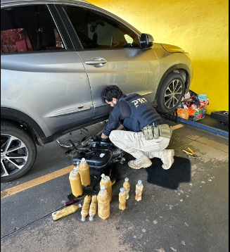 Durante fiscalização, a equipe abordou um veículo Honda/HR-V, ocupado por seis pessoas. Ao serem questionados sobre a viagem, os ocupantes apresentaram informações contraditórias quanto à origem e ao destino, o que motivou uma fiscalização mais detalhada. No interior do veículo, foram identificados indícios de adulteração no sistema do tanque de combustível e, após verificação, os policiais localizaram 18,36 kg de cocaína ocultos no compartimento. Na sequência, constatou-se que um segundo veículo trafegava em conjunto com o primeiro, o que motivou a abordagem deste. Seus ocupantes também foram qualificados na ocorrência por possível envolvimento.