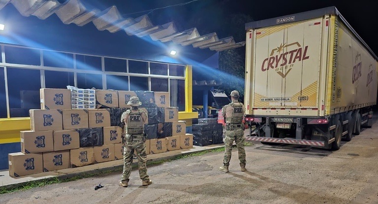 Na madrugada desta sexta-feira (20), a Polícia Rodoviária Federal (PRF) interceptou um carregamento ilegal de cigarros e produtos de higiene durante fiscalização de rotina na BR-364. A ação ocorreu por volta de 01h30, no quilômetro 115, em Rio Branco.