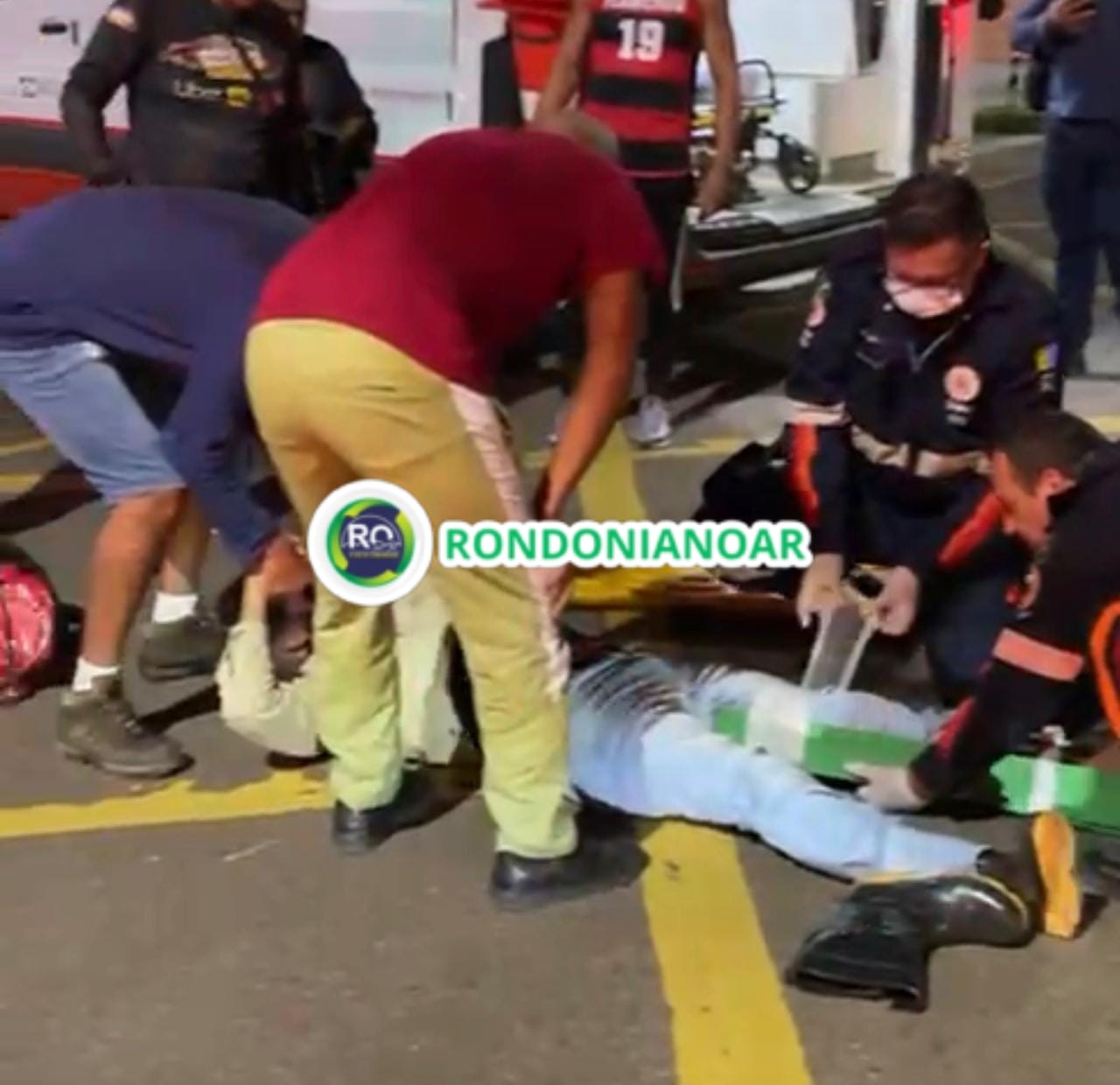 Um idoso que trabalhava como motoboy sofreu fratura na perna na noite desta quinta-feira (26), em colisão entre duas motos no cruzamento da Avenida Calama com Rua Gonçalves Dias, no centro de Porto Velho.