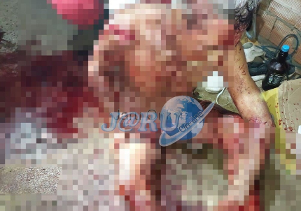 Quando a policia chegou, encontrou a vítima ainda consciente, porém bastante debilitada devido à grande perda de sangue. O homem apresentava vários cortes profundos nos braços, costelas, ombro e costas, evidenciando a violência do ataque.