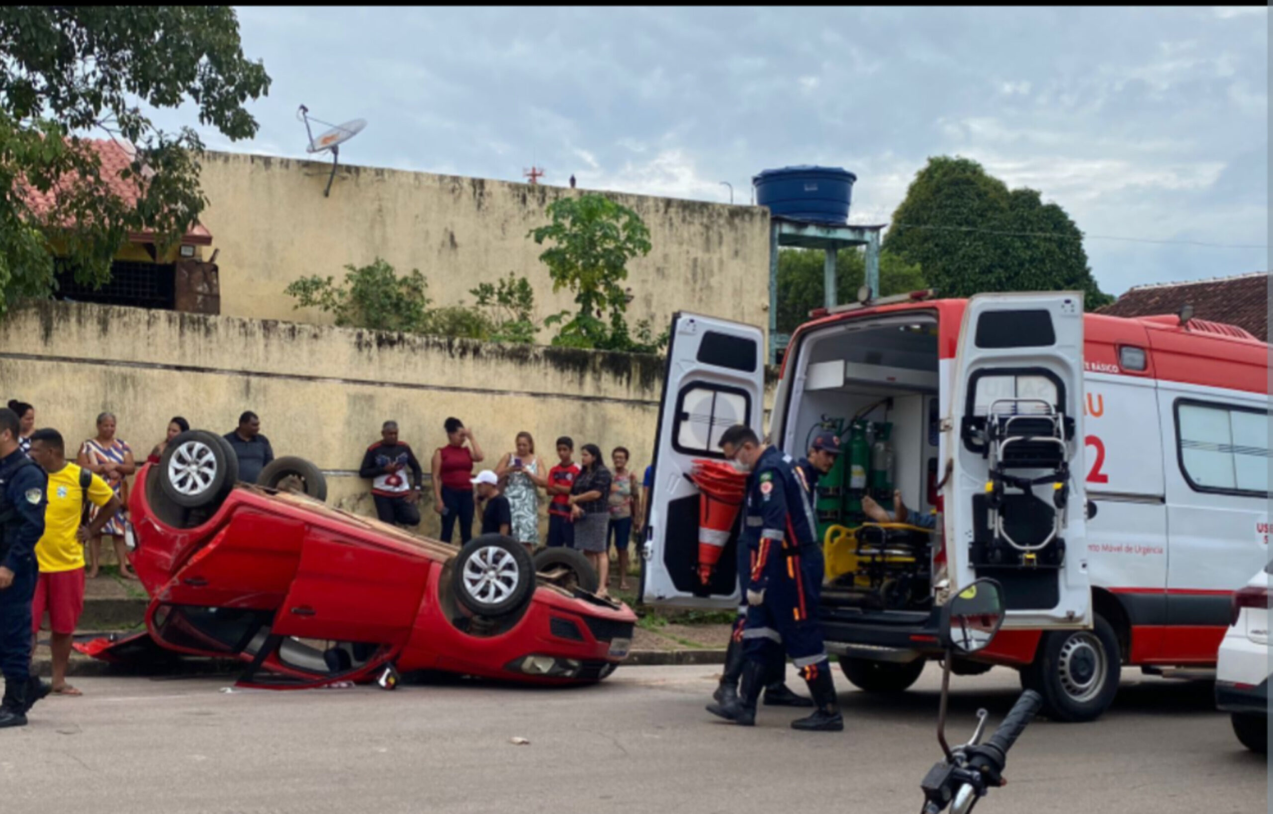 Um veículo gol da cor vermelha capotou após colidir com HB-20, a equipe do SAMU foi solicitada e três vítimas foram socorridas para uma unidade de saúde de Porto velho.